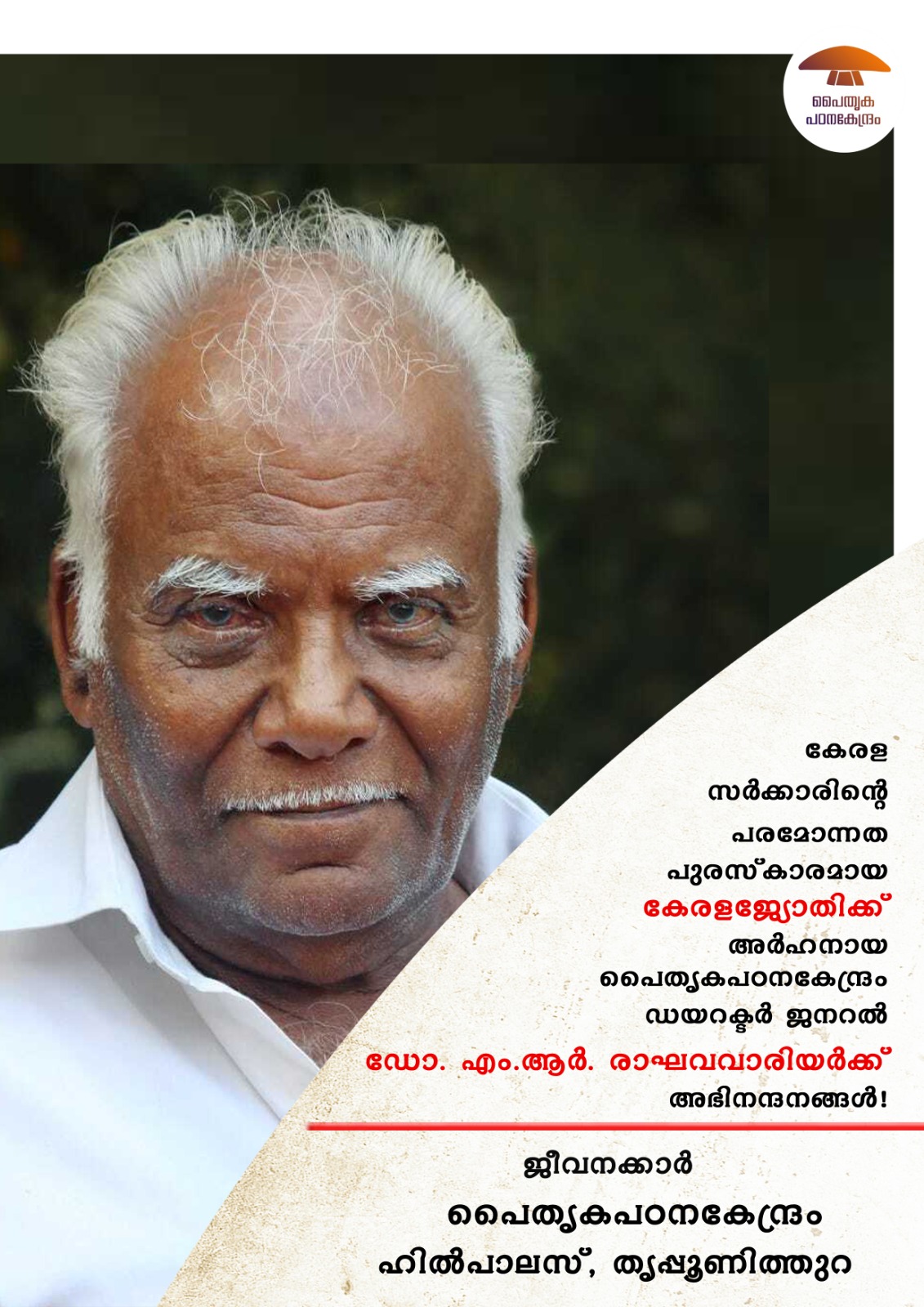 2025-ലെ കേരളജ്യോതി പുരസ്കാരം ഡോ. എം.ആർ. രാഘവവാരിയർക്ക്